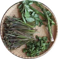 当日の収穫 1.コゴミ 2.ワラビ 2.タラの芽 4.こしあぶら 5.ごんずい 6.小葉ぎぼし 7.岩ぎぼし 8.さんきらい 9.アミガサタケ 当日のメニュー 1.ちらし寿司 2.中華風大根とクラゲの和物 3.四川風キュウリ甘酢漬4.キュウリの四川風ぴりから 5.キングサーモンのスライスオニオン 6.牛肉串揚げあんかけ 7.エビのピリカラいため 8.春キャベツのカリカリベーコン 9.平貝と大豆の佃煮 10.永源寺こんにゃくピリカラ 11.いり豆腐 12.あおさと川エビの天ぷら 13.パスタと鶏肉パプリカ煮込み 14.桜餅 15.山菜天ぷら |