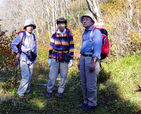 11月6日 10月も終え11月の声を聞くと、山々は急速に色づき始める。大気は乾燥し、吹き抜ける風は透明度を増していくのである。奥美濃が年中で最も極彩色に輝く季節なのだ。 京都を8時に出ると丁度2時間半ほどで岐阜県坂内村の「ふれあいの森」に着くことが出来る。夏には人々で賑わっているのあろう森も、今は深閑として鎮まっている。登山者のものと思われる車が2台止まっているだけだ。 10分ほどで支度を終えると、山旅の始まりだ。周辺はよく整備され、どの道を選択するかと戸惑うほど、標識が至る所に立てられいる。僕たちは左手の尾根から山頂を目指す計画なので、左よりの標識を辿りながらしばらくは谷沿いの道をたどることにした。 もう、花の時期は終えたのであろう、僅かにシオンらしき花が咲き残っているだけである。10分ほどで林道をよぎると、いよいよ尾根への取り付きである。斜度は徐々に増して行く。僕たちは、いそいだりははしない。一歩一歩確実に階段状の道を踏みしめる。それでも、視界は意外な速さで開けて行くのであった。周囲の雑木林は、紅葉のさなかである。シロモジ、ミズナラ、ブナなどが思い思いの色彩で装っている。まるで、万華鏡の中にいるようである。加瀬さんと笠谷さんは、植物には大変詳しい。にわか植物愛好家の僕など足下のも及ばない。30分ほどで一息入れることにした。額に滲んだ汗を拭き、呼吸を整える。そして木の間越しに周囲の山々を眺める。僅かではあるが乾ききった風が吹き抜けて行く。幸せな一時である。 そして、今日最後の登りである。台風のため道は大変な被害を受けたのであろう、至る所に真新しい土嚢が積まれている。25分ほどで、前方にアンテナらしきものが視界に入ってくる。山頂だろうか。時間にすれば15分ほど距離である。 アンテナが視界全体を占めるほど大きく迫ると、眼前が急に開け、放り出されるように広場に飛び出る。やはり1234m、貝月山山頂であった。広場は、以前に比べると随分と広くなっていて、テーブルや、展望台などが設置されてある。そして、大勢の登山者が次々とあらわれる。以前のような、何もない、誰もいない、静かな山頂ではなかった。少し寂しい気持ちになるが、それはそれとして受け入れよう。ただ、コンクリート製の展望台だけはどうしても余計なものに思えてならなかった。 さすがに、展望の素晴らしさは以前と変わりなく素晴らしいものであった。北に向けば、眼前に横山、蕎麦粒が直ぐにそれと判る形状で迫っている。目線を上げると、能郷白山が豊かでおおらかな山容で横たわっている。そして最奥の空には、既に冠雪した加賀白山が霞んでいる。振り向けば、尾西、三国を従えた伊吹が堂々たる質感で空を限っているのであった。使い古した地図を見ながら次々と現れる山々を定めていく。時間は知らぬ間に過ぎていくのであった。 僕たちは、少し長い昼食を採ることにした。先ずは、ビールで乾杯である。そして、暖かな秋只中の柔らかな日差しを受けて思い思いの時間を過ごし、山頂の一時を満喫したのであった。 1時間半近い昼食後、かっての唯一の登山道であった村界尾根を辿り日越へと向かう。道は昔より良く整備されていて随分と歩きよい。ただ、根曲がり竹が茂り展望が悪くなっている。30分ほどで日越に到着。美束側に少し下ってみたが、背の高い草が両側に茂り荒れていた。最早、この道を辿る人は殆どいないのであろう。それにひきかわり、坂内村側の道はよみがえっていた。山腹を巻くように付けられた旧道は、紅葉の只中の山毛欅林に覆われ旅情に満ちあふれている。僕たちは、決して急いだりはしない。何度もザックを下ろしては写真を撮り、振り返り振り返り辿って行くのであった。足下には、ツルリンドウがワインレッド愛らしい実を付けている。 そして旧道が林道と合っすると、今日一日の山旅も終わりである。時計を見るとまだ2時を少しまわった時刻であったが、林道におちる影はもう長かった。 |