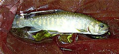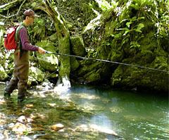 | 26cmのイワナ | 淵を釣る山本氏 |