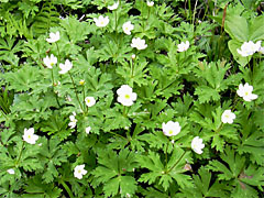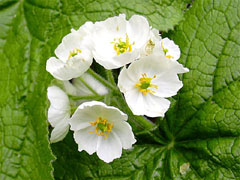 五時少し前に、林道に到着。後は一路、今日の宿「つるの」に向かう。林道の横にはヤマフジが咲き乱れている。美しさに、つい見とれてしまう。5時半「つるの」着。今日、山に入った女将さんは既に帰っておられた。玄関の横の部屋には、山ほどの「うど」と、モミジガサ(地元では、藤吉郎と呼んでいる。)置かれていた。夕食は、もちろん山菜づくしである。 5月22日 今日は、朝から小雨である。それでも大杉谷を目指したが、先行者があり釣りは諦め花巡りに変更。先ずは、ギョウジャニンニクの群生地に直行。その後は、林道をぶらぶら、白峰スキー場へ。雨は、降ったり止んだりで本格的な花の撮影も出来ず。2時半白峰を後にする。 |