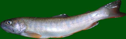 4時を少し過ぎたころ入渓。半年ぶりの谷の感触はやはり訳もなく心地良い。谷の音、風、光、−−−何もかもが新鮮だ。借りた仕掛けの「おもり」は少し重すぎるが面倒なのでそのままで使う事にする。重い分、少しテンションをかけながら仕掛けを流せば何とかなるであろう。堰堤を何度も越え上流に向かう。釣り始めて10分ほどで10cm程の岩魚がかかる。もちろん、放流だ。ついで、10cmの岩魚が追ってくる。飲見込まれては大変なので仕掛けを早めに上げる。時計を見るともう5時だ、次のポイントを最後と決める。そこは、低くて幅の広い堰堤の落ち込みであった。ひと目ここしかないと思われる流れに仕掛けを流すと、2度目に目印が止まった。一瞬間をおいて合わせると、重い当たりが手元に伝わってくる。釣り上げると、もうさびの取れた22cm美しい岩魚であった。